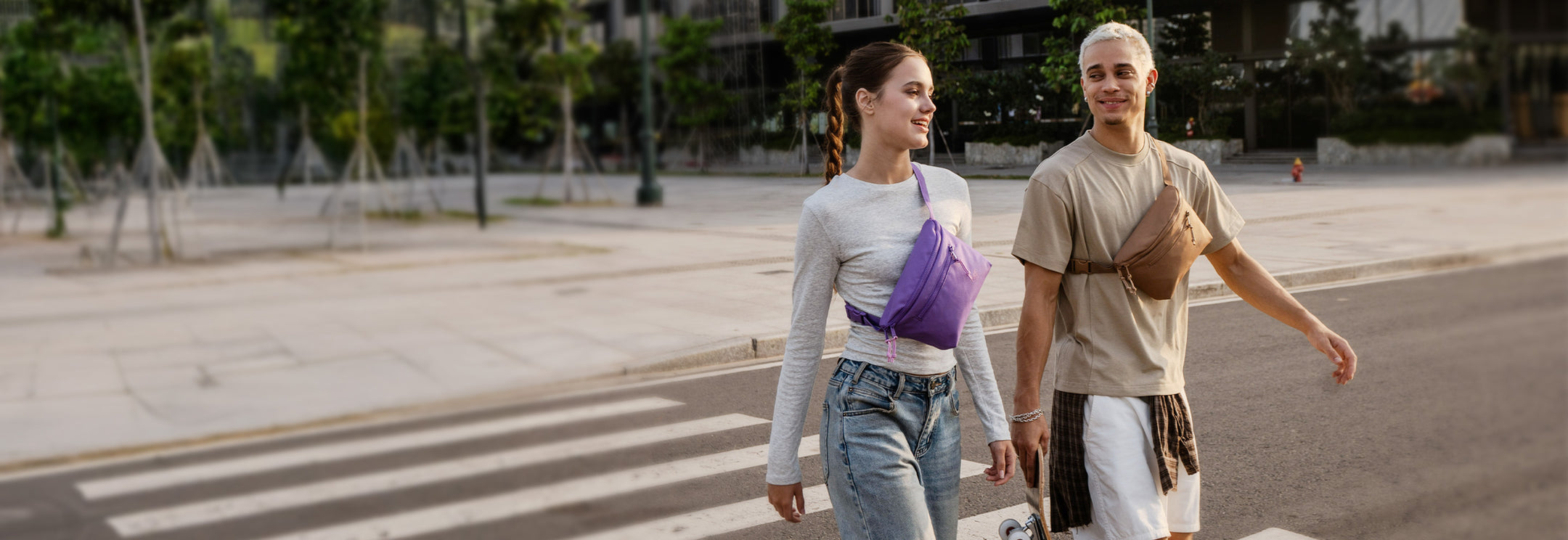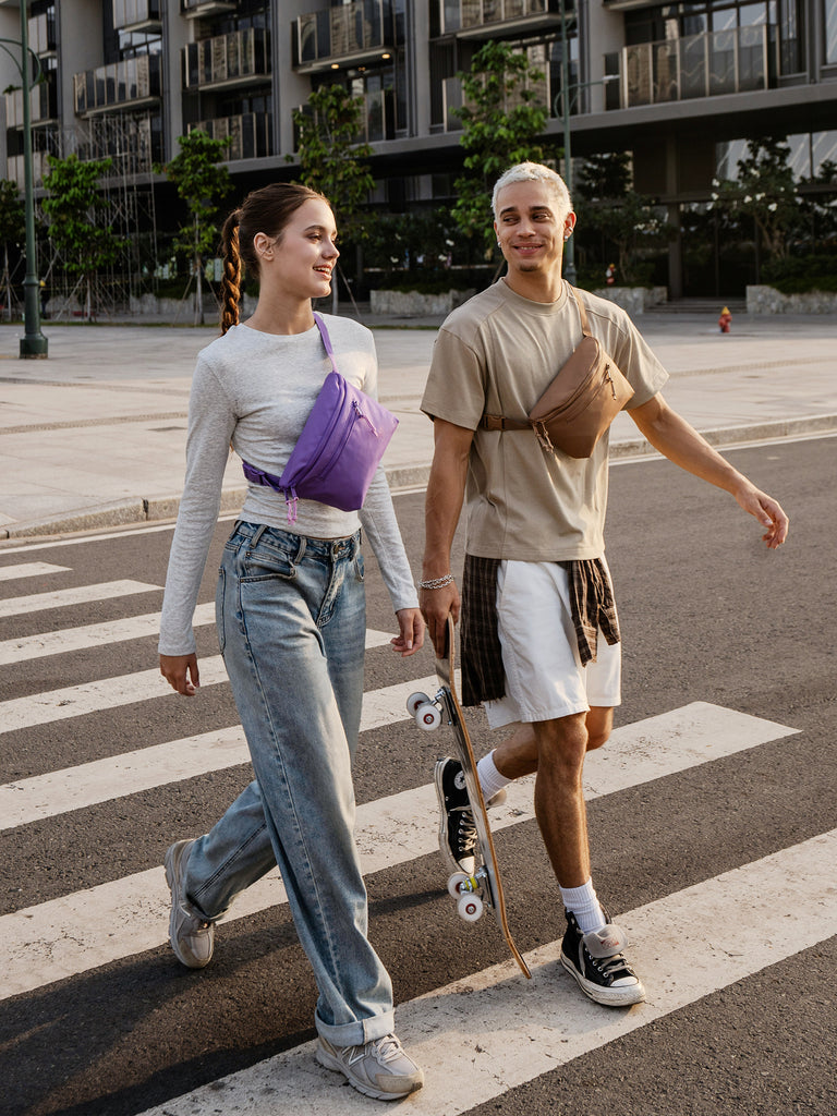 Our fresh take on a hands-free travel shoulder bag with a new design and recycled materials.