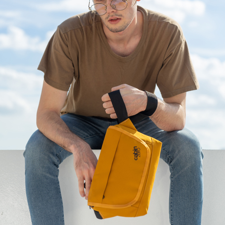 Whether you're going for a casual walk or on a flight journey, the CabinZero Shoulder Bag Flapjack in Orange Chill keeps the hassles away from your hands while protects your belongings - with a security flap, an RFID blocking pocket and water-resistant materials.