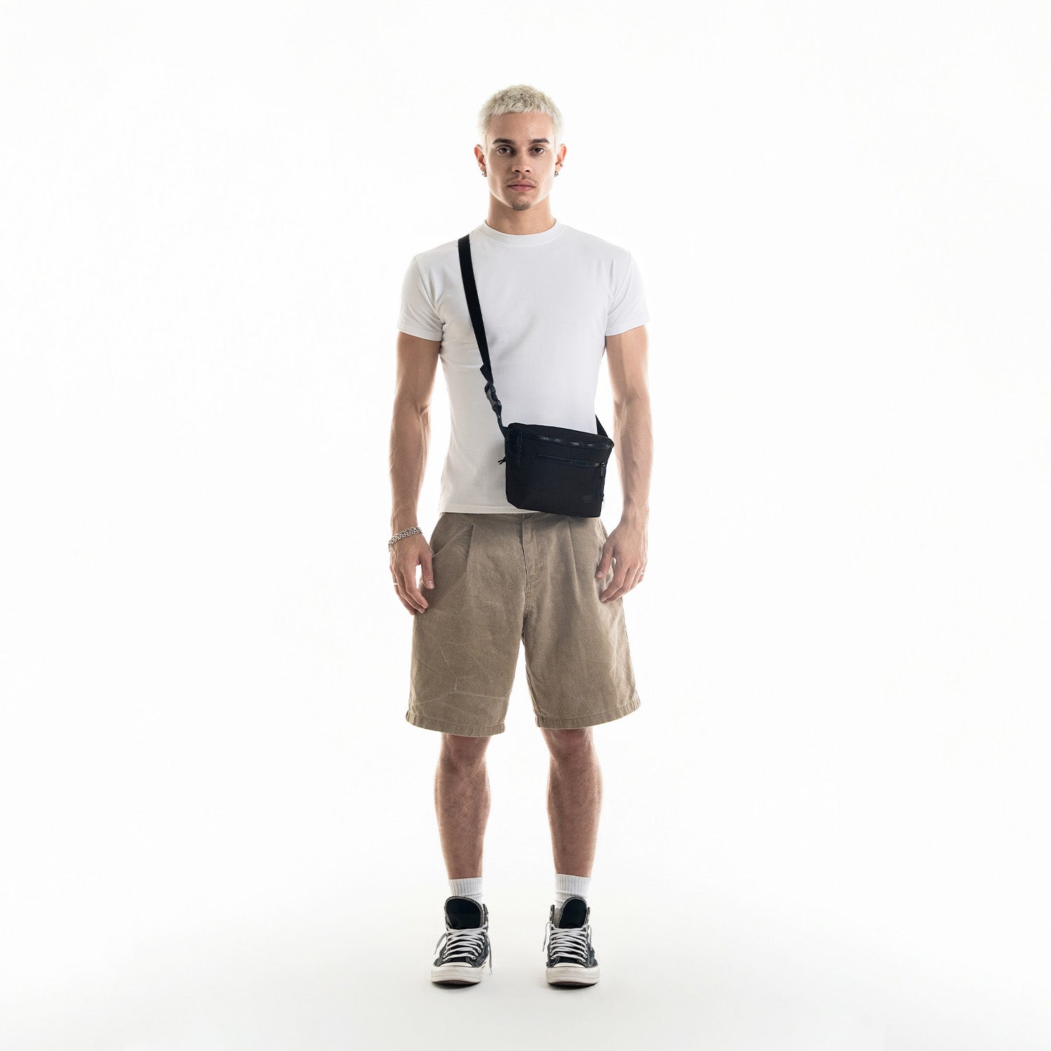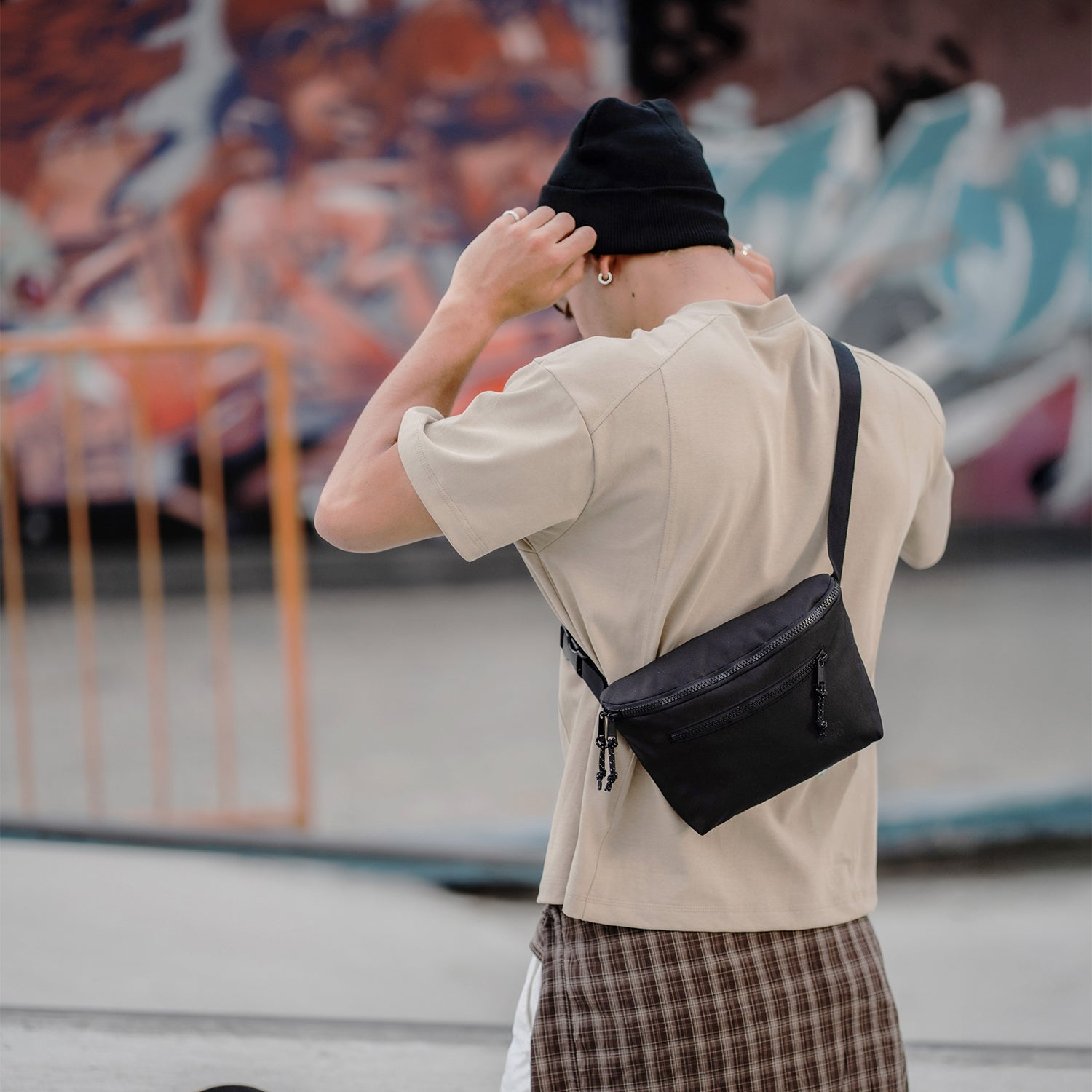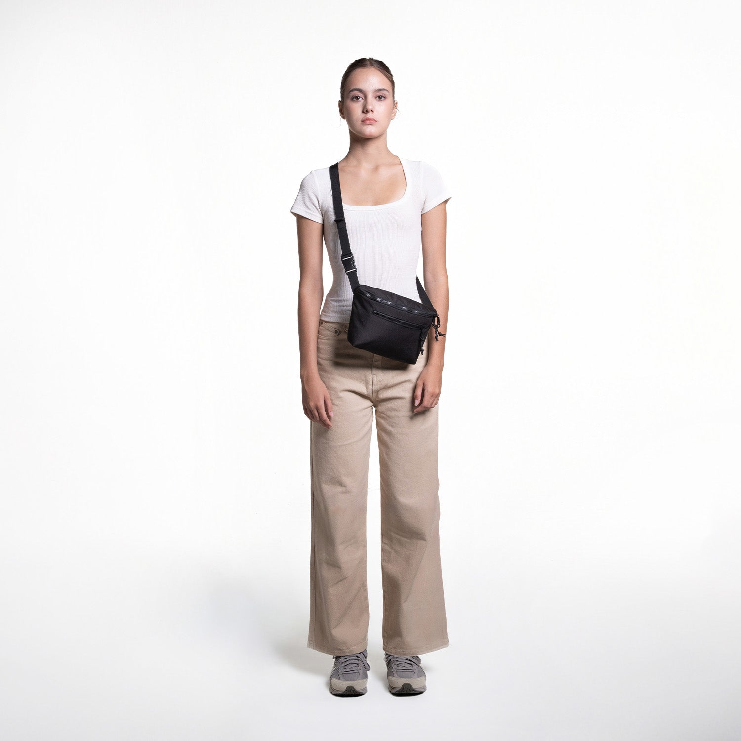 Our fresh take on a hands-free travel shoulder bag with a new design and recycled materials.