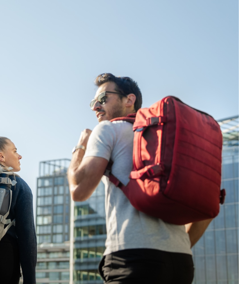 The last backpack you’ll ever need. Never wait. Never pay bag fees. Never again.